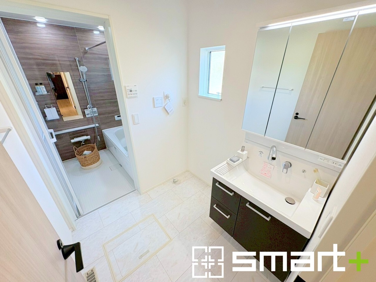 ~人気の三面鏡を採用~ ・洗面台は三面鏡仕様なので鏡の角度を変える事で頭の後ろの方までご確認可能です。 ・鏡の裏が収納になっておりますので、洗面台周りもスッキリと片付きます。