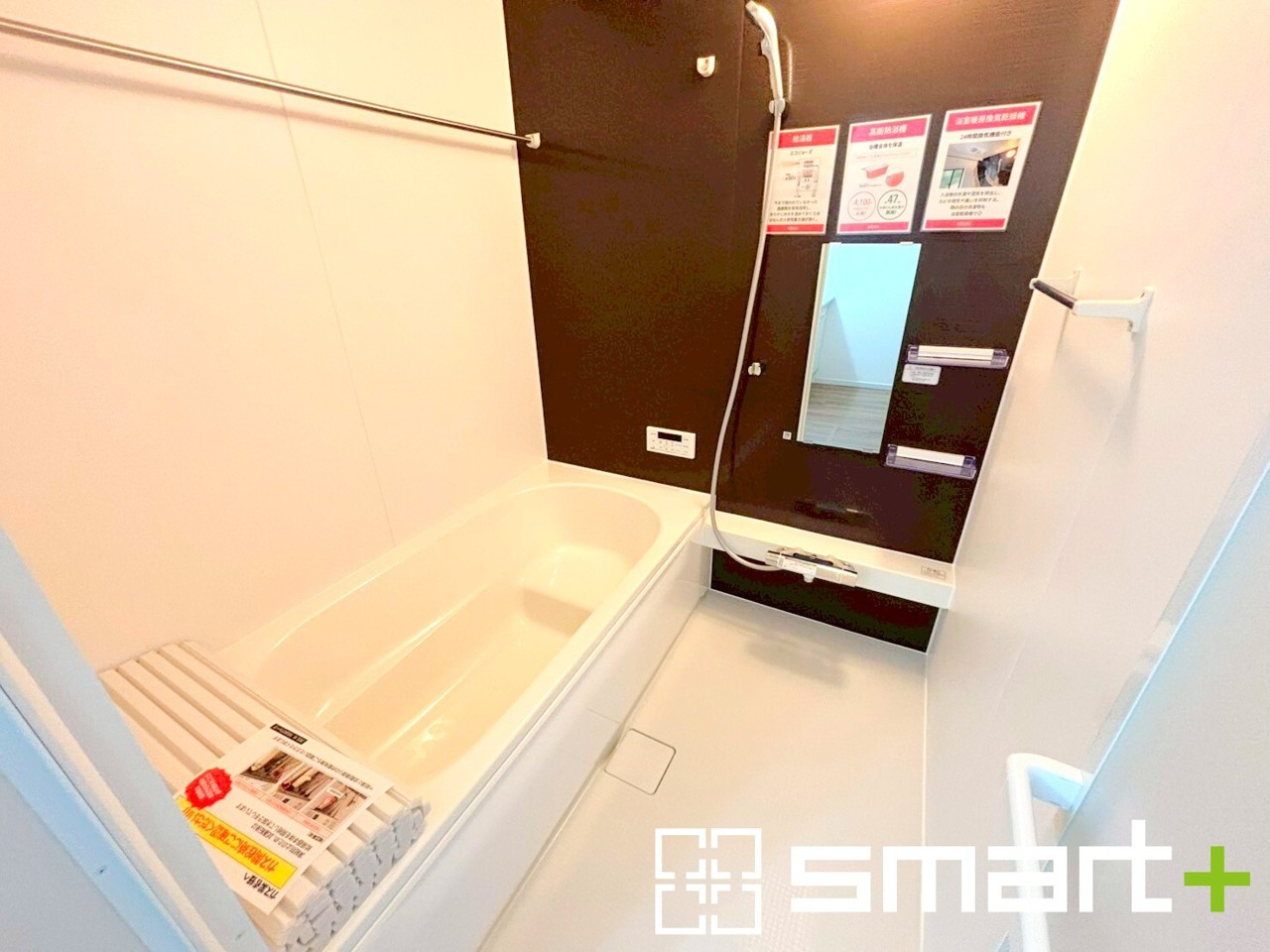 ~浴室乾燥機付きの浴室~ ・浴室には乾燥機が付いているので雨の日でも洗濯物を干すことが可能です。 ・水はけの良い床材など機能面も充実。マイクロバルなどオプションもご相談くださいませ。
