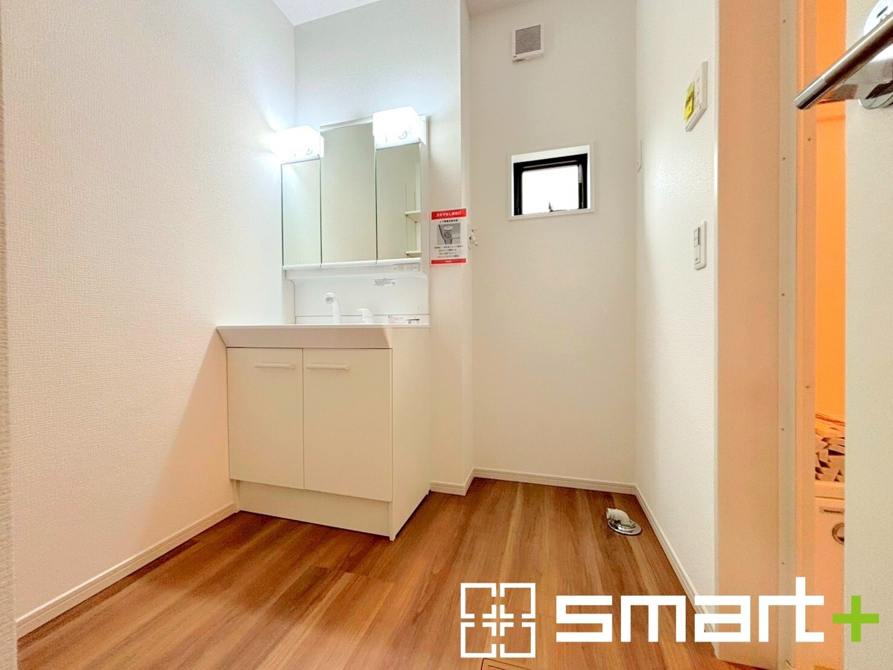 ~人気の三面鏡を採用~ ・洗面台は三面鏡仕様なので鏡の角度を変える事で頭の後ろの方までご確認可能です。 ・鏡の裏が収納になっておりますので、洗面台周りもスッキリと片付きます。