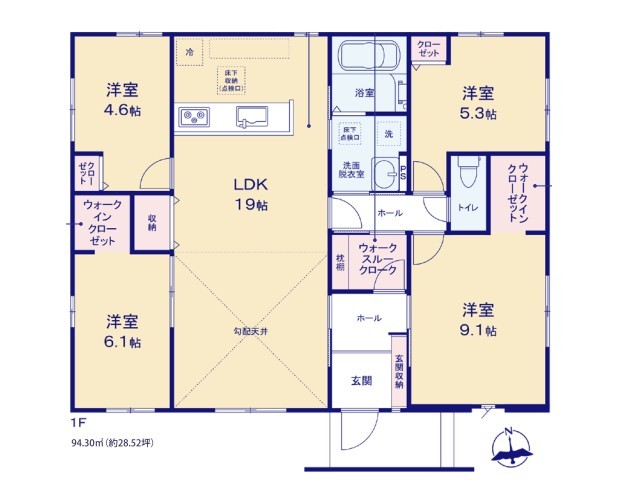 | 間取 | 4LDK (LDK19帖、洋室9.1帖、洋室6.1帖、洋室5.3帖、洋室4.6帖) | ||