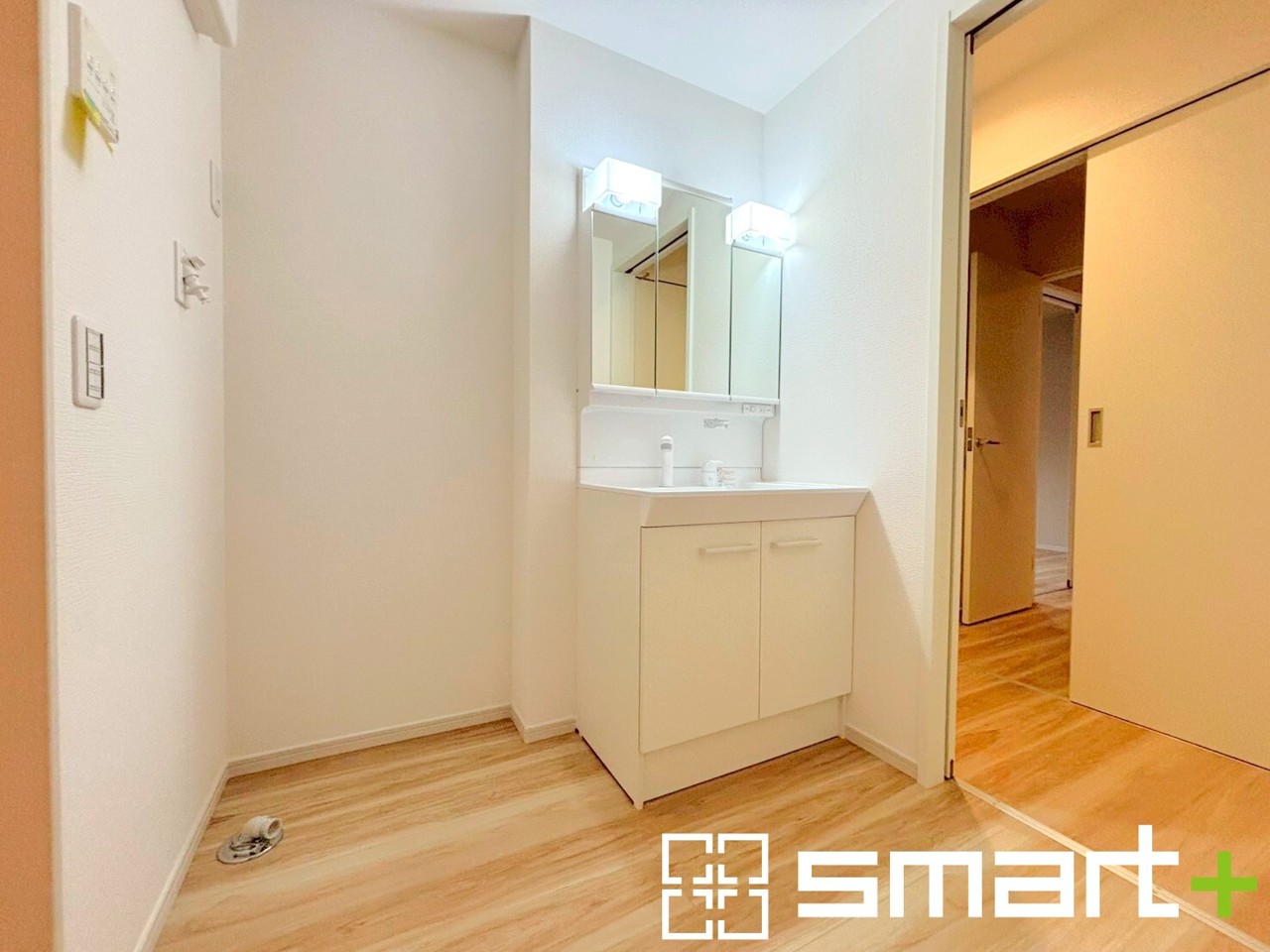 ~人気の三面鏡を採用~ ・洗面台は三面鏡仕様なので鏡の角度を変える事で頭の後ろの方までご確認可能です。 ・鏡の裏が収納になっておりますので、洗面台周りもスッキリと片付きます。