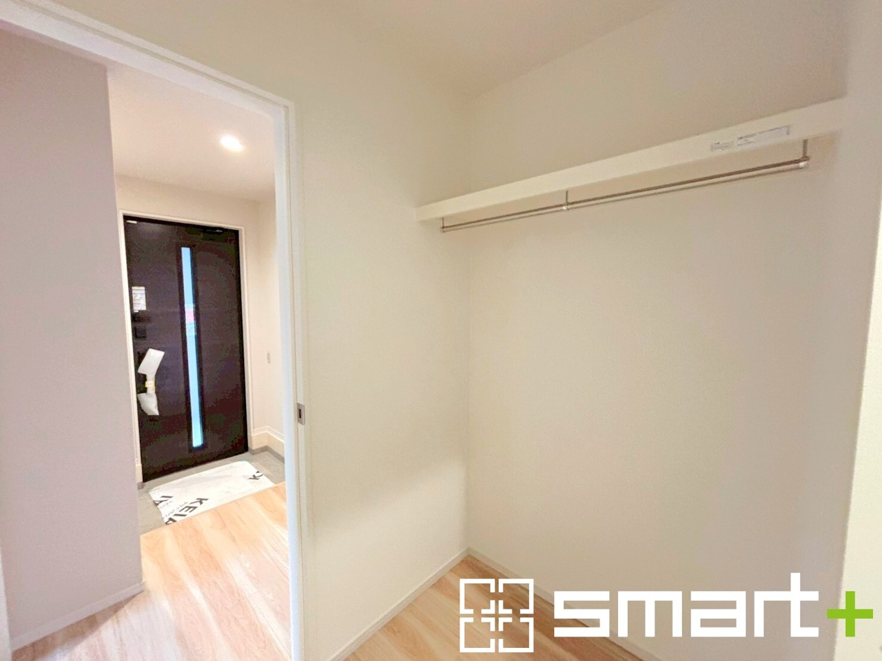 ~憧れのウォークスルークローク~ ・玄関すぐの便利な動線のウォークスルークローク。 ・パイプ付きの枕棚で、外出時の身支度もスムーズです。