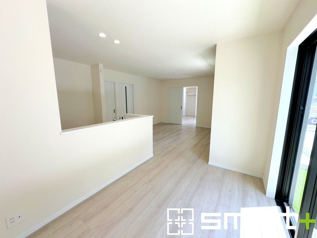B号棟 ~リビング横の洋室~ ・お子様のプレイルームやお昼寝、趣味のお部屋など、用途様々な1階洋室。収納付きで2面採光の明るい空間が広がります。 ・寝室はもちろん、玄関から直接出入り可能なのでゲストルームにも利用できますね。