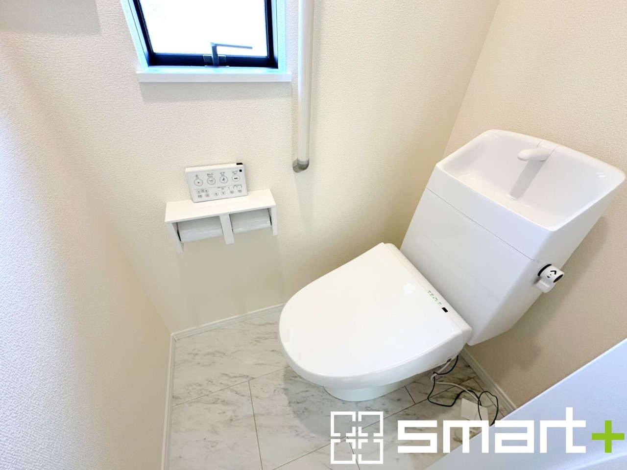B号棟 ~窓付きの明るいトイレ~ ・外からの日差しを取り込むので、昼間は窓からの光で十分ですね。 ・使用後や掃除の際に窓を開ければ、外からの新鮮な空気を取り込み素早く換気ができます。