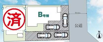 B号棟 ~ゆとりあるカースペース2台分~ ・セカンドカーや来客時にも困らないカースペース2台分。物置や駐輪スペースなどにも利用できますね。 ・カーポートなどのオプションもお気軽にご相談くださいませ。