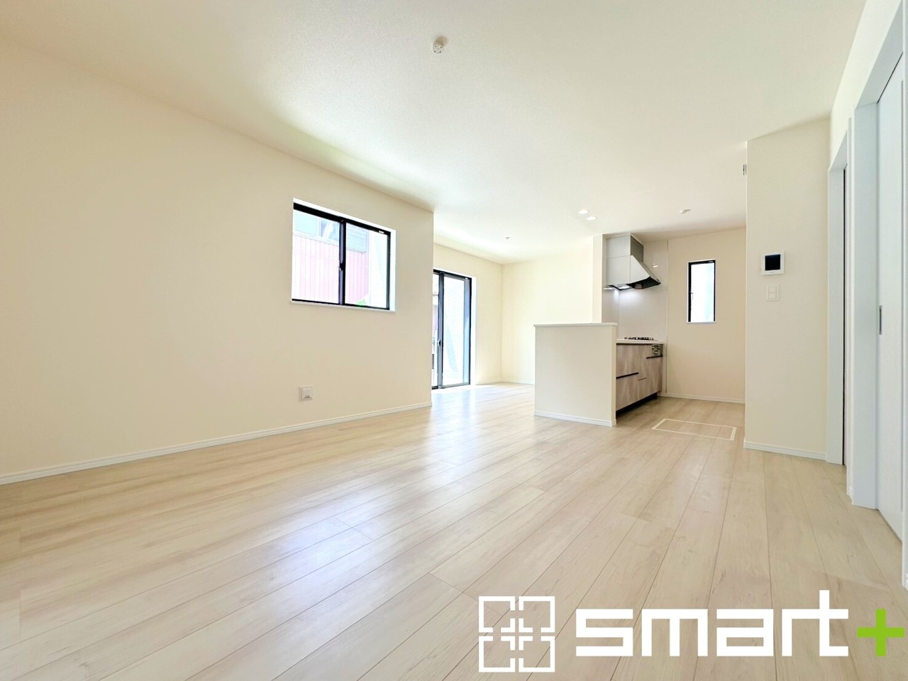 B号棟 ~穏やかな陽の入るLDK~ ・大きな窓のあるLDKは陽当りも良好で明るい空間となっております。 ・ご家族団らんなど過ごす時間の多いLDKが明るいのは嬉しいポイントですね。