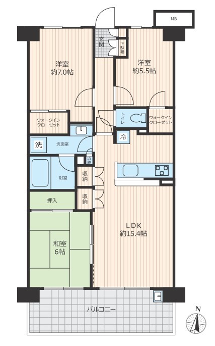 | 間取 | 3LDK (LDK15.4帖、洋室7.0帖、洋室5.5帖、和室6.0帖) | ||