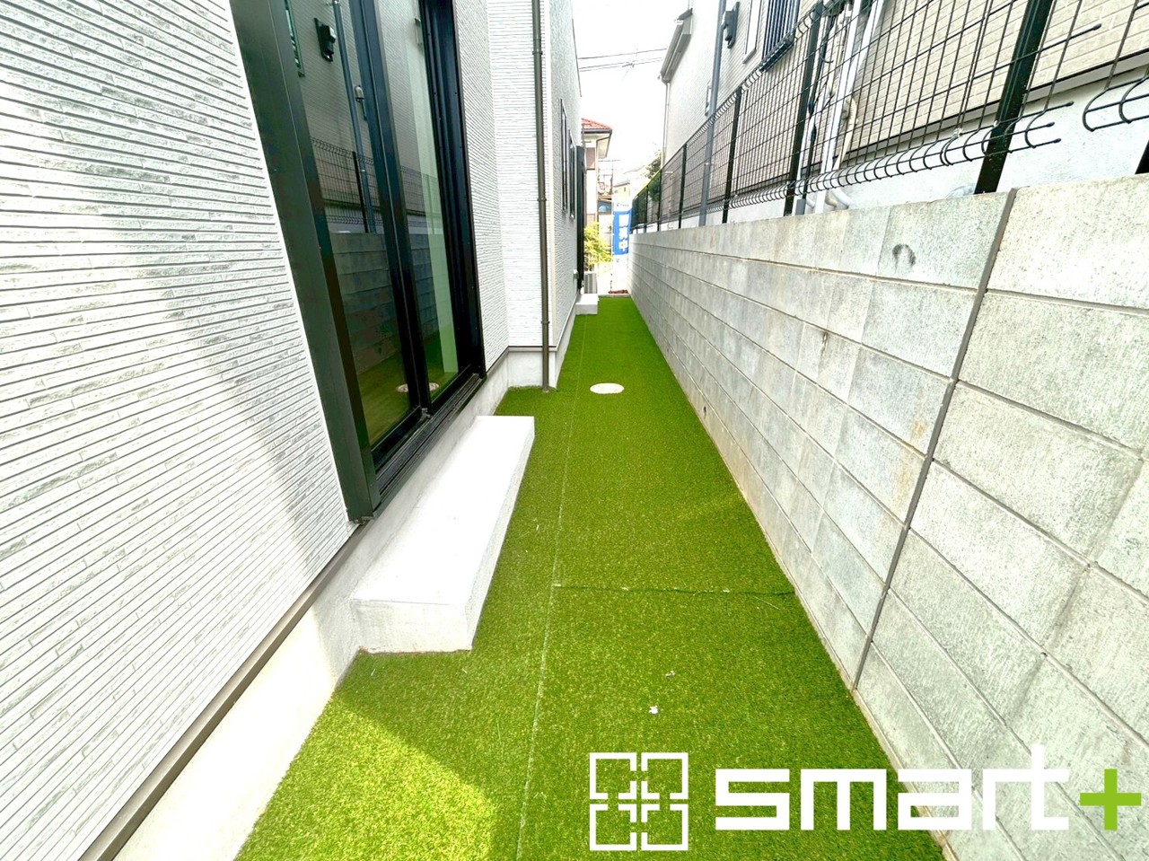 ~人工芝のある綺麗なお庭~ ・標準で人工芝を敷設しておりますので、見た目にも綺麗なお庭となっております。 ・人工芝の場合雑草が生えてこず、管理が楽なのも嬉しいポイントです。