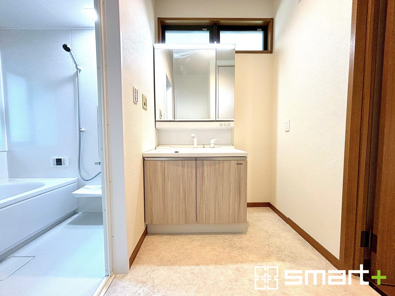 ~シャワー付き洗面化粧台~ ・新品交換した洗面化粧台はシャワー付きなので、寝ぐせ直しや洗面ボウルのお掃除にも便利です。 ・使い勝手の良い三面鏡タイプも嬉しいですね。