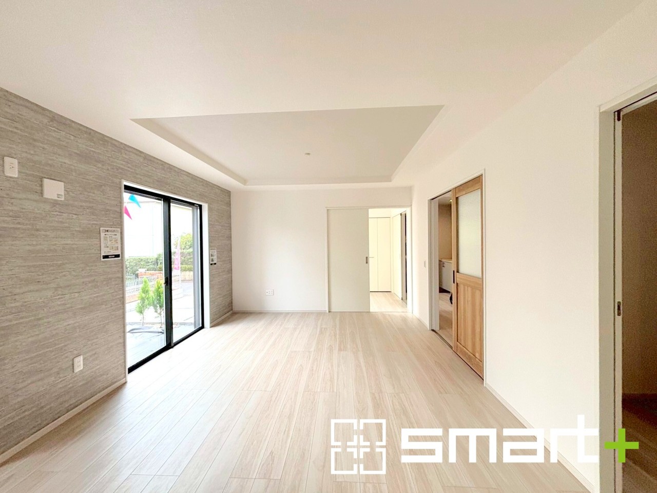 ~折り上げ天井のあるLDK~ ・一部天井を高くする折り上げ天井を配する事で縦への空間が生まれ、開放感のある広々とした仕様に。 ・ぜひ現地でその魅力をご体感くださいませ。