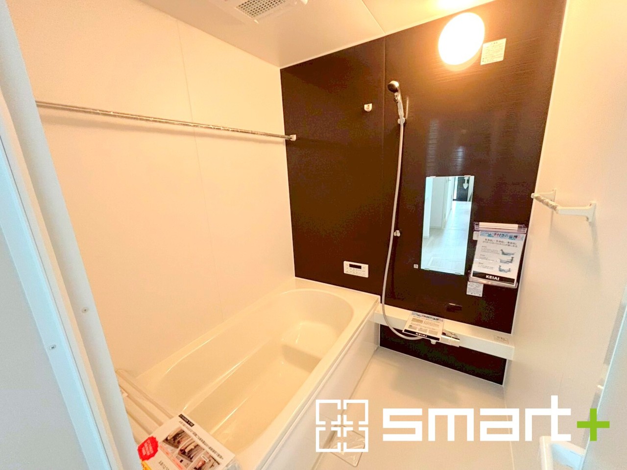 ~浴室乾燥機付きの浴室~ ・浴室には乾燥機が付いているので雨の日でも洗濯物を干すことが可能です。 ・水はけの良い床材など機能面も充実。マイクロバルなどオプションもご相談くださいませ。