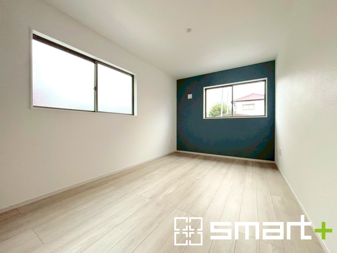 ~窓からはたっぷりの陽光~ ・ゆとりある広さの主寝室は8.4帖。ご夫婦やご兄弟でもゆったりお過ごしいただけます。 ・オシャレなアクセントクロスでシンプルなお部屋もメリハリのある空間に。