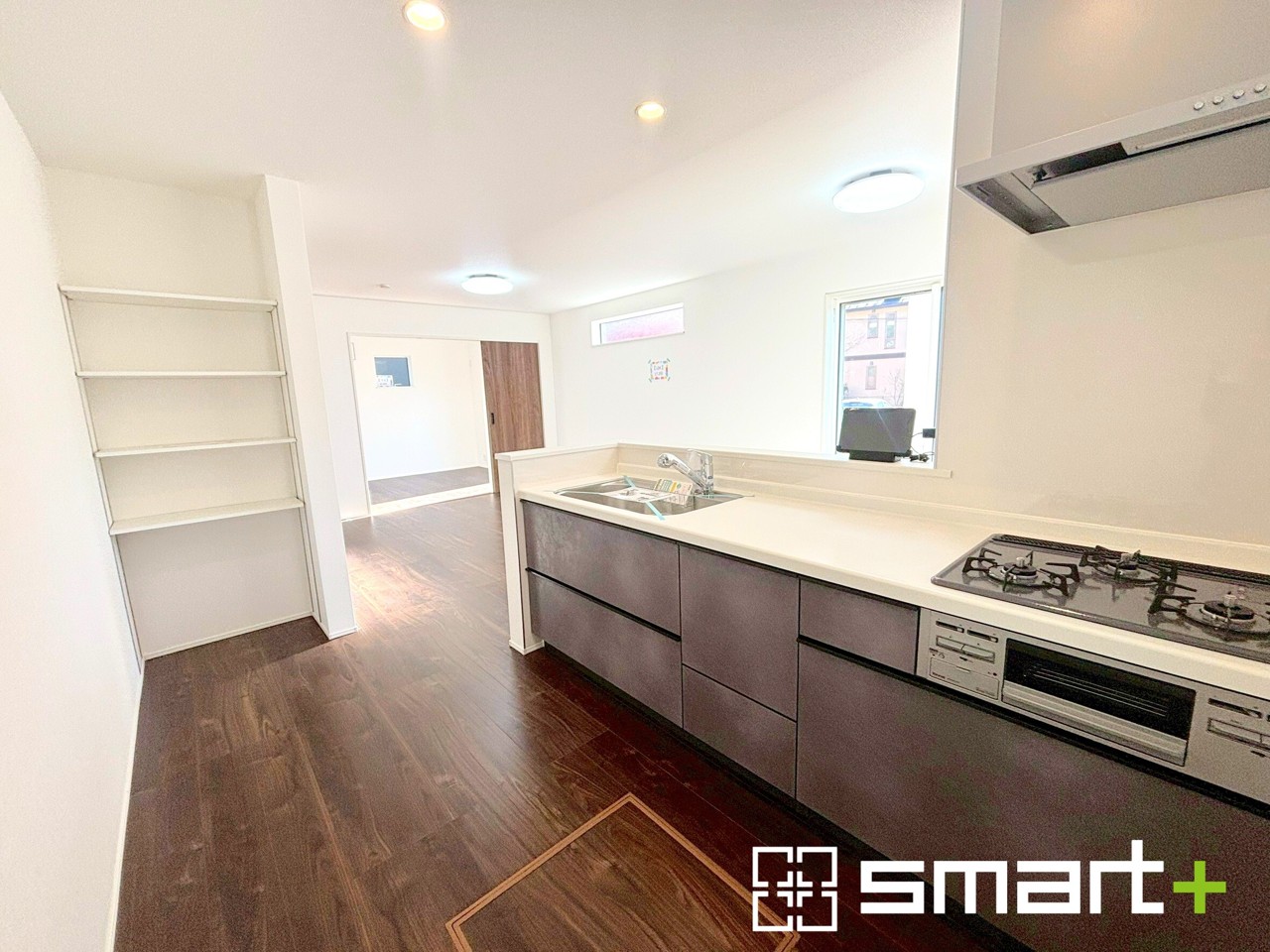 ~使い勝手の良いシステムキッチン~ ・料理がしやすい設計のキッチンでお料理もはかどりますね。 ・もちろんキッチン下部は収納になっておりますので、フライパンなども収納可能です。