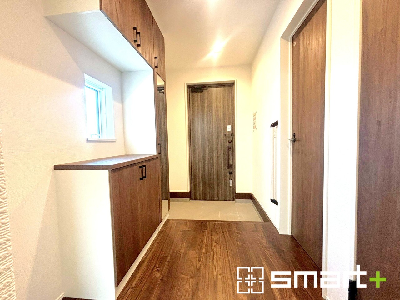 ~穏やかな陽の入る玄関~ ・シューズボックスの間に窓を設ける事で穏やかな陽の入る玄関に。 ・ご家族やご来客を明るい空間で出迎えてくれます。