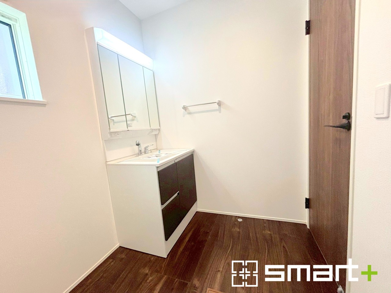 ~人気の三面鏡を採用~ ・洗面台は三面鏡仕様なので鏡の角度を変える事で頭の後ろの方までご確認可能です。 ・鏡の裏が収納になっておりますので、洗面台周りもスッキリと片付きます。