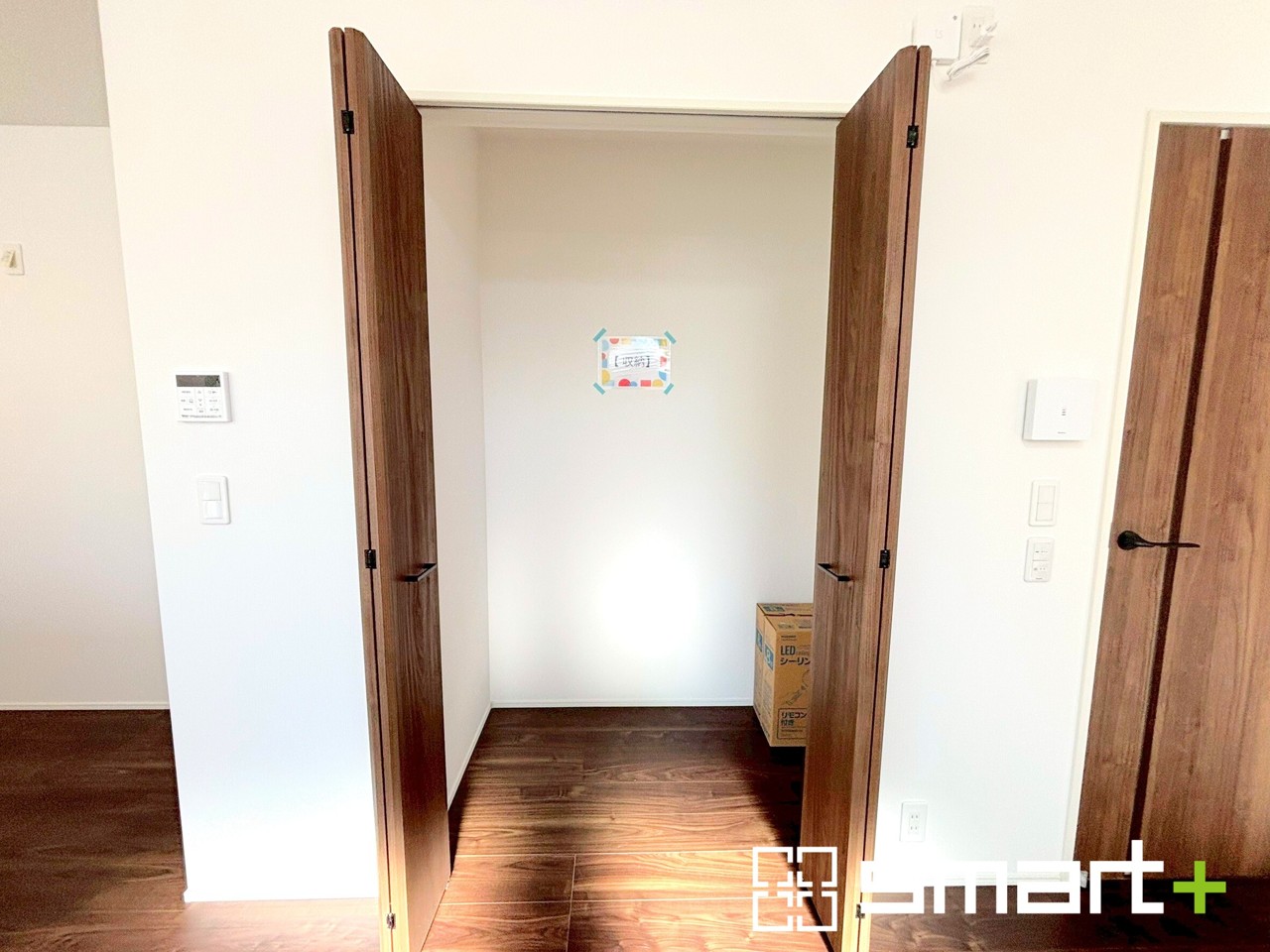 ~憧れのウォークインクローゼット~ ・居室にウォークインを設ける事で季節ものや趣味の用具などもスッキリと収納可能です。 ・ぜひ現地でその便利さをご体感くださいませ。