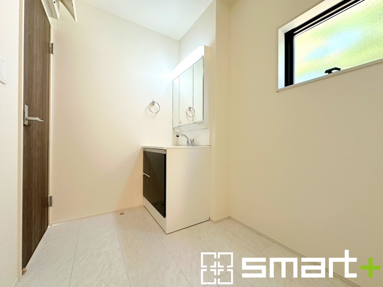 ~明るい洗面スペース~ ・窓から明るい陽が入り、気持ちよく朝の支度ができますね。 ・使い勝手の良い三面鏡タイプのシャワー付き洗面化粧台。鏡の裏に収納があるので洗面台周りもスッキリ。