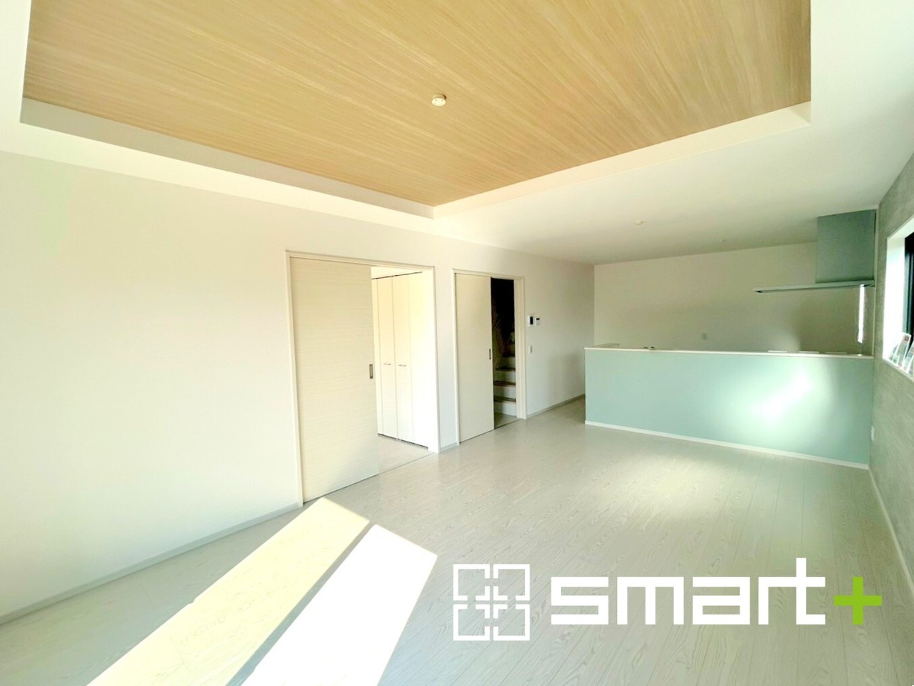 ~折り上げ天井のあるLDK~ ・一部天井を高くする折り上げ天井を配する事で縦への空間が生まれ、開放感のある広々とした仕様に。 ・ぜひ現地でその魅力をご体感くださいませ。