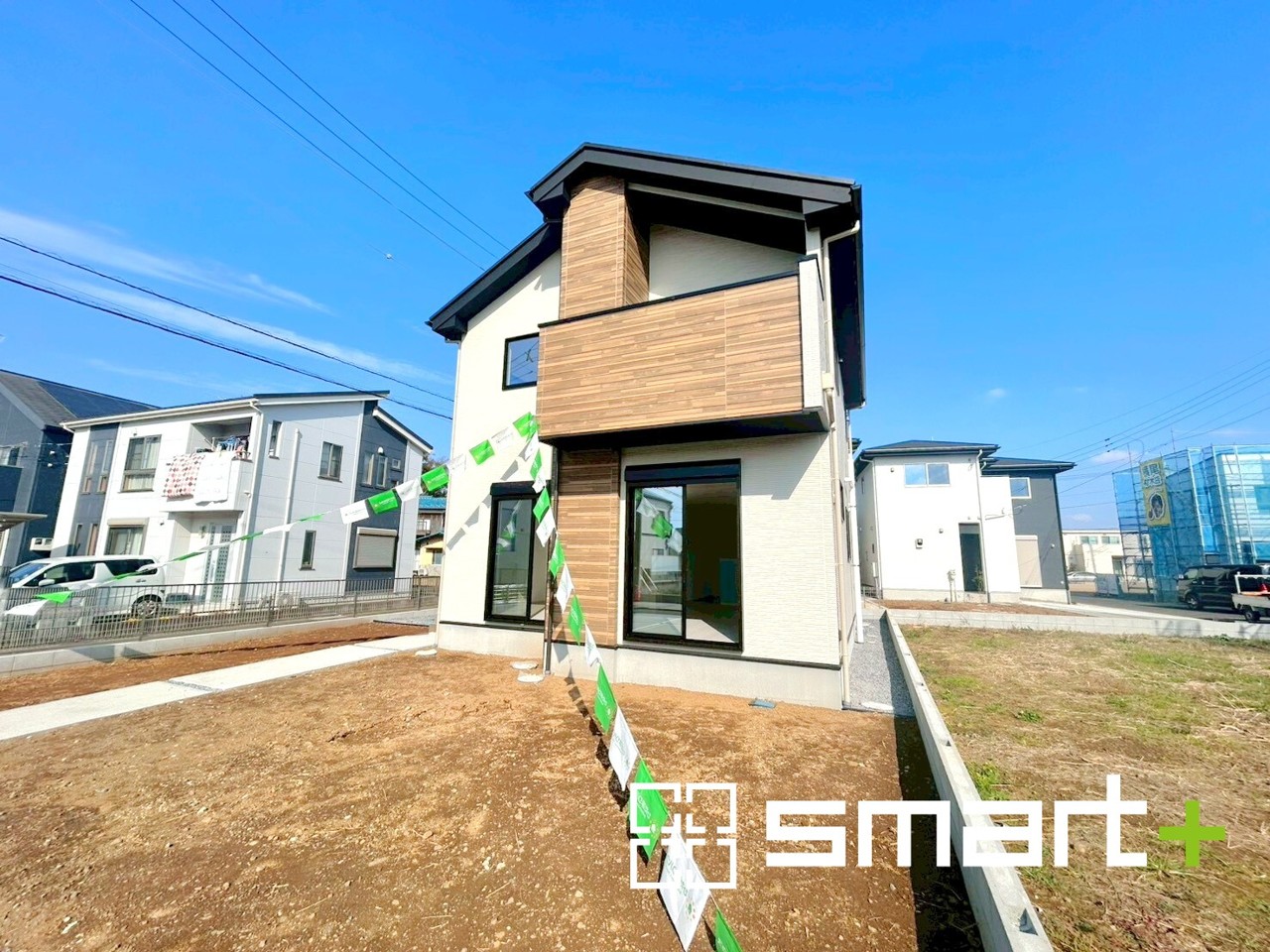 ~モダンな印象の外観~ ・木目調の外壁アクセントは幅広いテイストにマッチし、住まいに温かみを与えてくれる人気のデザイン。 ・見た目に重厚感が生まれ、高級感のある仕様となっております。