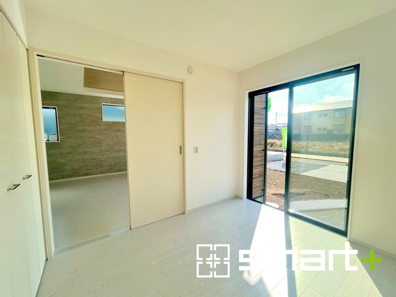 ~収納スペース付きの1階洋室~ ・寝室はもちろん、お子様のプレイルームや趣味のお部屋など、用途様々な1階洋室。 ・リビングの続き間として利用すれば22帖超の広々空間になります。