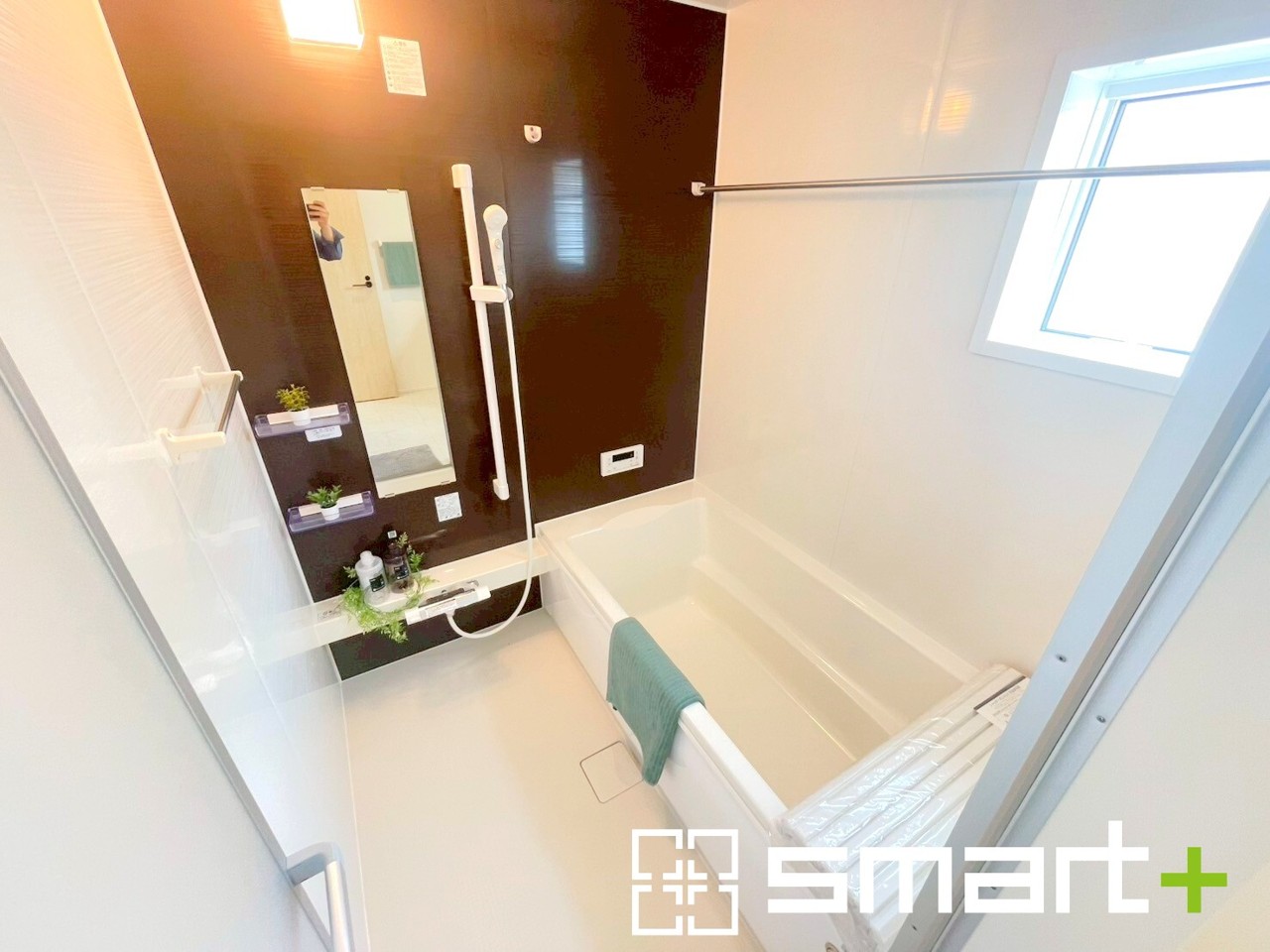 ~浴室乾燥機付きの浴室~ ・浴室には乾燥機が付いているので雨の日でも洗濯物を干すことが可能です。 ・水はけの良い床材など機能面も充実。マイクロバルなどオプションもご相談くださいませ。
