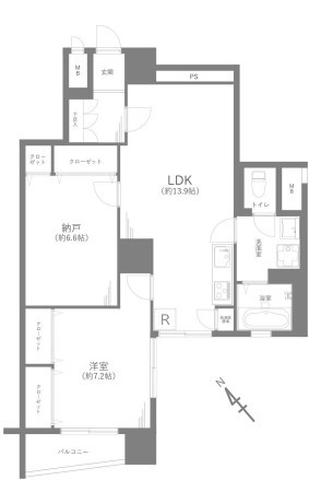 | 間取 | 1SLDK (LDK13.9帖、洋室7.2帖、S6.6帖) | ||