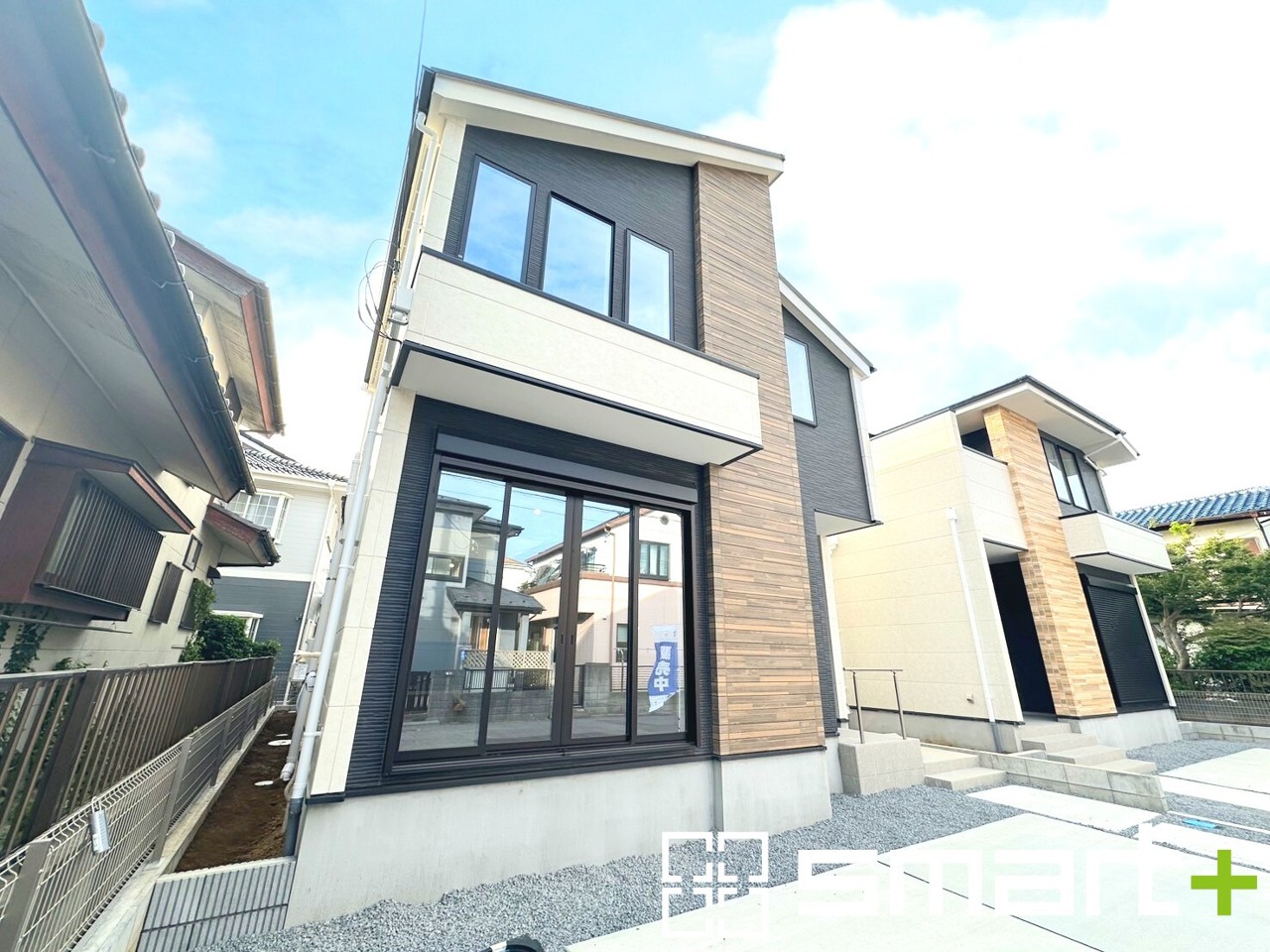 ~モダンな印象の外観~ ・木目調の外壁アクセントは幅広いテイストにマッチし、住まいに温かみを与えてくれる人気のデザイン。 ・見た目に重厚感が生まれ、高級感のある仕様となっております。