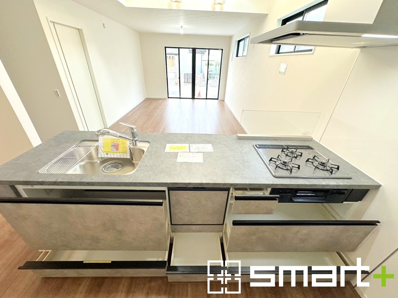 ~使い勝手の良いシステムキッチン~ ・料理がしやすい設計のキッチンでお料理もはかどりますね。 ・もちろんキッチン下部は収納になっておりますので、フライパンなども収納可能です。