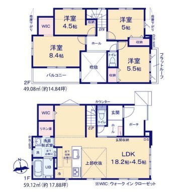 | 間取 | 4LDK (LDK22.7帖、洋室8.4帖、洋室5.5帖、洋室5帖、洋室4.5帖) | ||