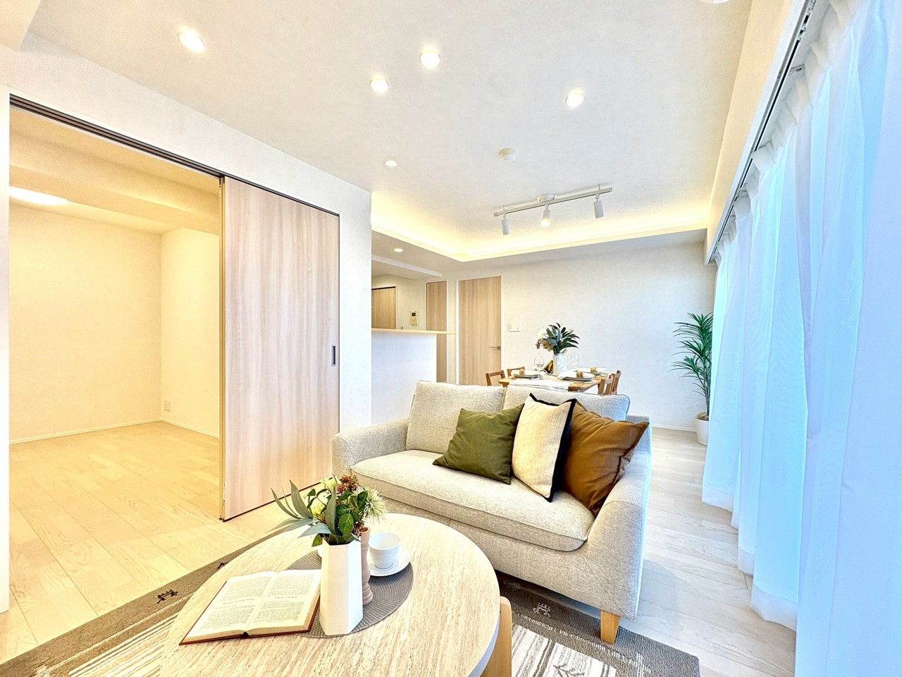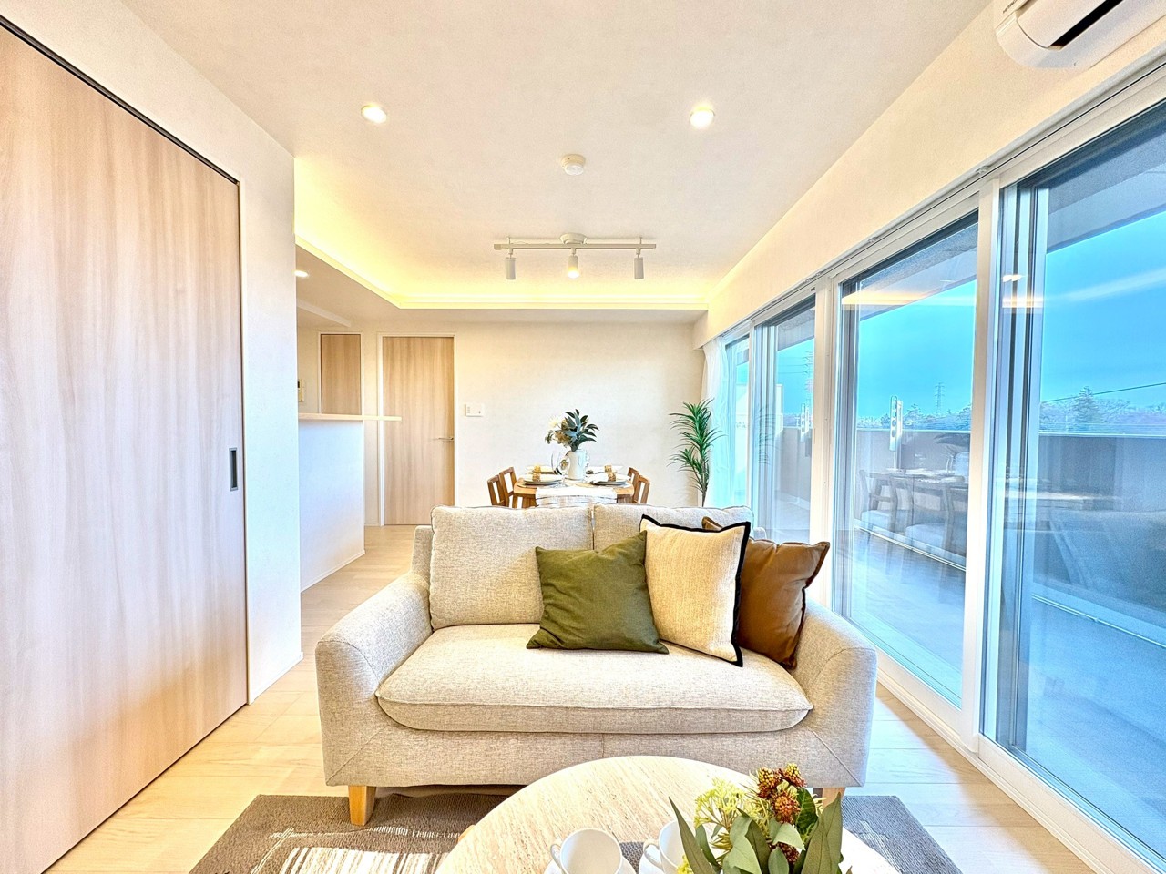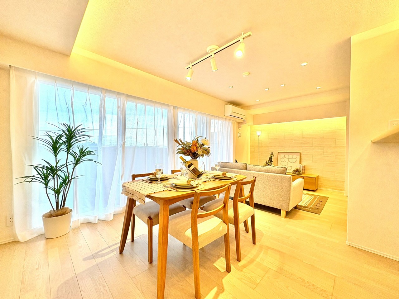 ~穏やかな陽の入るLDK~ ・大きな窓のあるLDKは陽当りも良好で明るい空間となっております。 ・ご家族団らんなど過ごす時間の多いLDKが明るいのは嬉しいポイントですね。