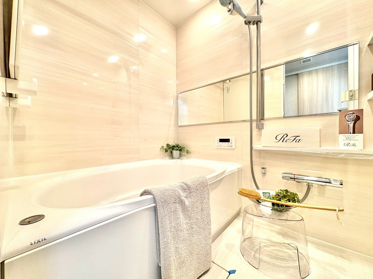 ~浴室乾燥機付きの浴室~ ・浴室には乾燥機が付いているので雨の日でも洗濯物を干すことが可能です。 ・水はけの良い床材など機能面も充実。マイクロバルなどオプションもご相談くださいませ。