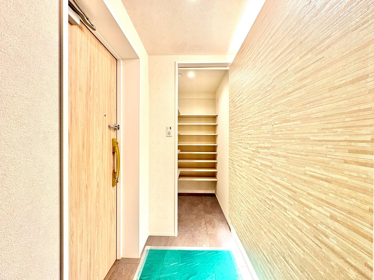 ~シューズインクロークのある玄関~ ・玄関横にシューズインクロークをご用意。 ・追加の靴置きとしてはもちろん、スキー・ゴルフなど趣味の用具の置場としてもご利用いただけます。