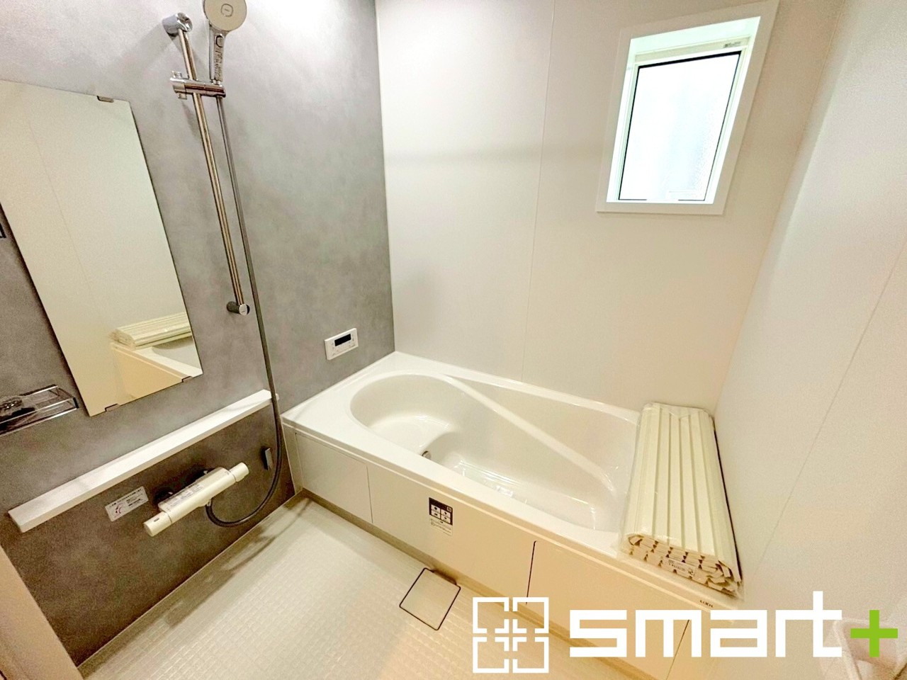 ~浴室乾燥機付きの浴室~ ・浴室には乾燥機が付いているので雨の日でも洗濯物を干すことが可能です。 ・水はけの良い床材など機能面も充実。マイクロバルなどオプションもご相談くださいませ。