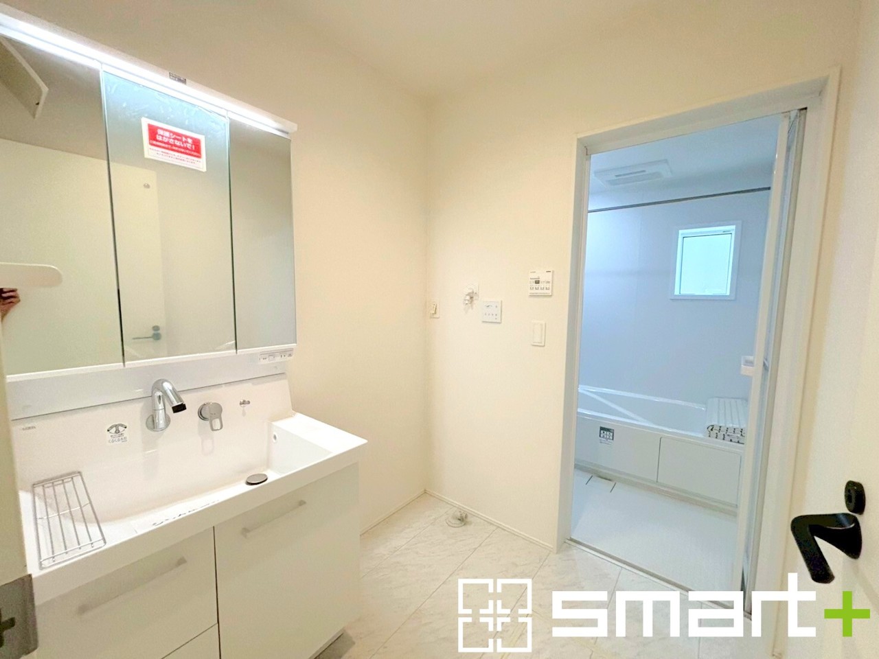 ~人気の三面鏡を採用~ ・洗面台は三面鏡仕様なので鏡の角度を変える事で頭の後ろの方までご確認可能です。 ・鏡の裏が収納になっておりますので、洗面台周りもスッキリと片付きます。