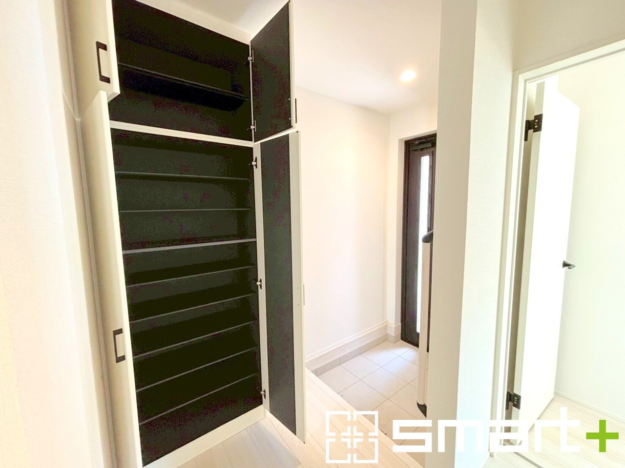 ~たっぷりしまえるシューズボックス~ ・備え付けのシューズボックスは充分な容量を確保。 ・便利な稼働式の棚で高さや大きさのあるものもスッキリしまえて快適。