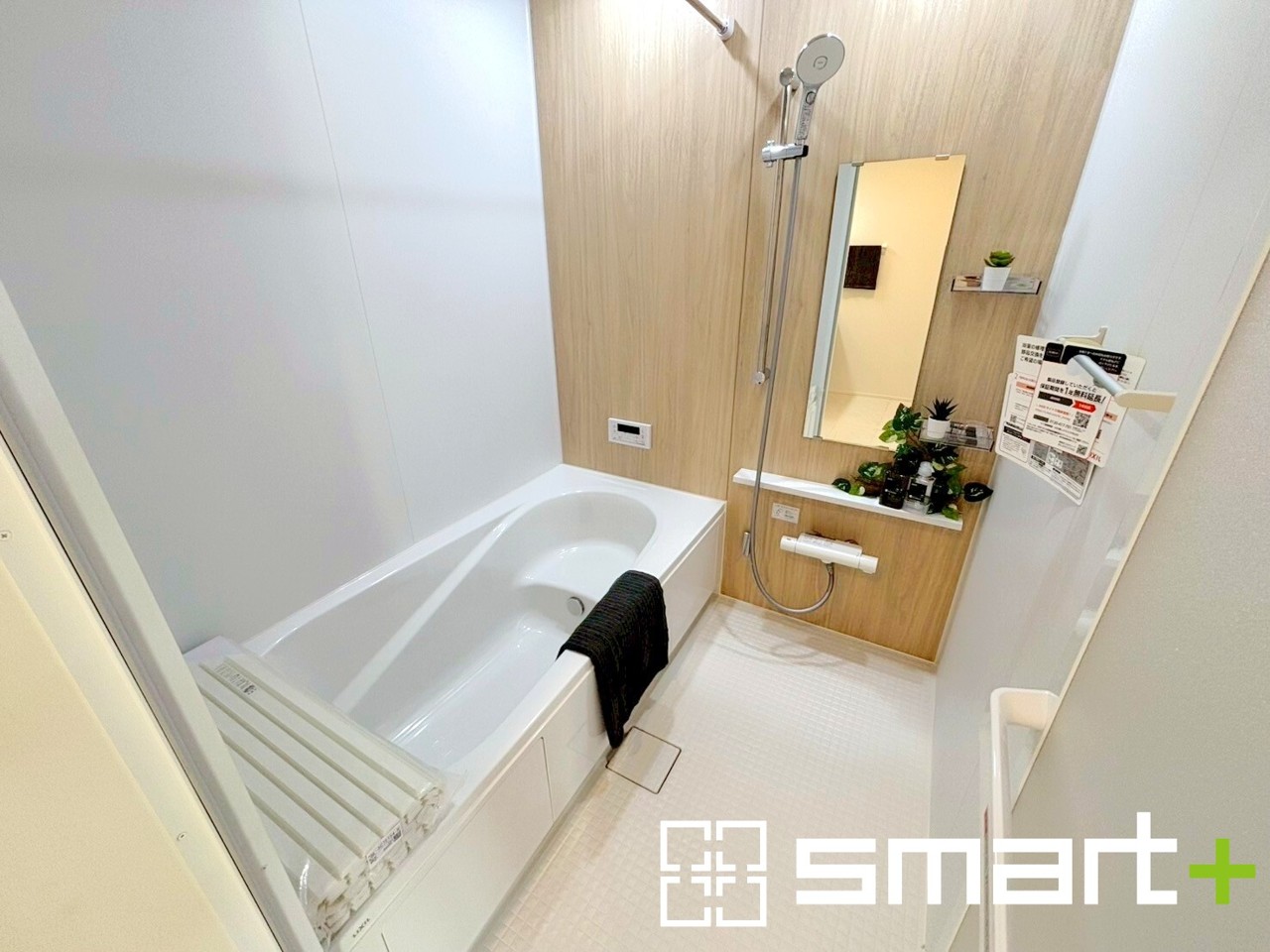 ~浴室乾燥機付きの浴室~ ・浴室には乾燥機が付いているので雨の日でも洗濯物を干すことが可能です。 ・水はけの良い床材など機能面も充実。マイクロバルなどオプションもご相談くださいませ。 (4号棟)
