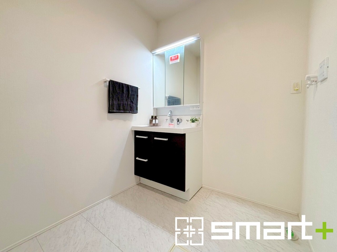 ~人気の三面鏡を採用~ ・洗面台は三面鏡仕様なので鏡の角度を変える事で頭の後ろの方までご確認可能です。 ・鏡の裏が収納になっておりますので、洗面台周りもスッキリと片付きます。 (4号棟)