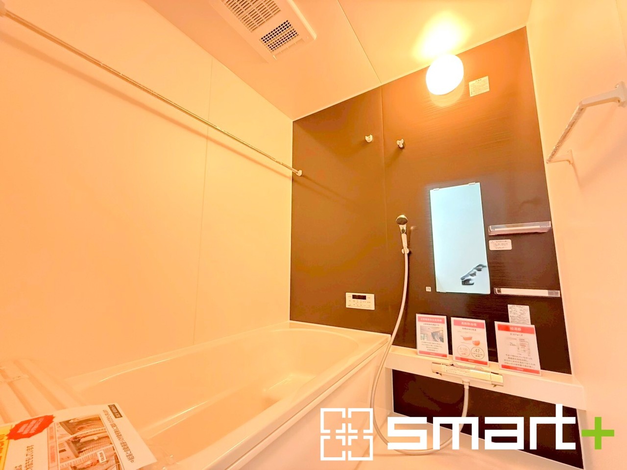 ~浴室乾燥機付きの浴室~ ・浴室には乾燥機が付いているので雨の日でも洗濯物を干すことが可能です。 ・水はけの良い床材など機能面も充実。マイクロバルなどオプションもご相談くださいませ。