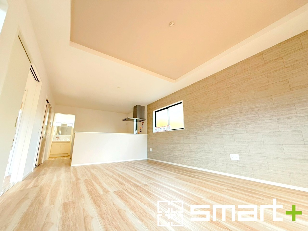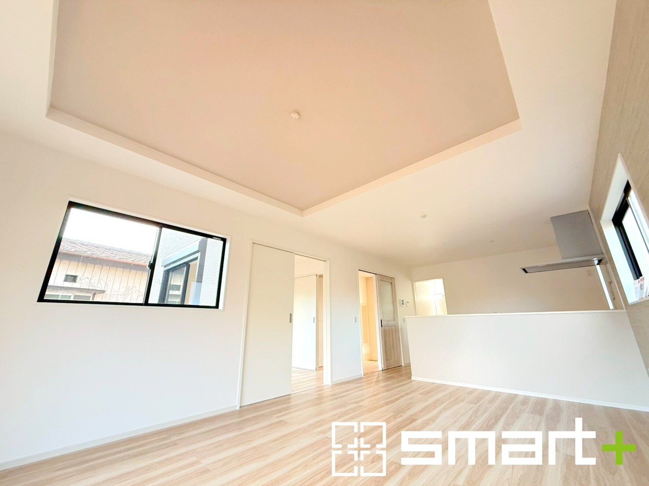 ~折り上げ天井のあるLDK~ ・一部天井を高くする折り上げ天井を配する事で縦への空間が生まれ、開放感のある広々とした仕様に。 ・ぜひ現地でその魅力をご体感くださいませ。