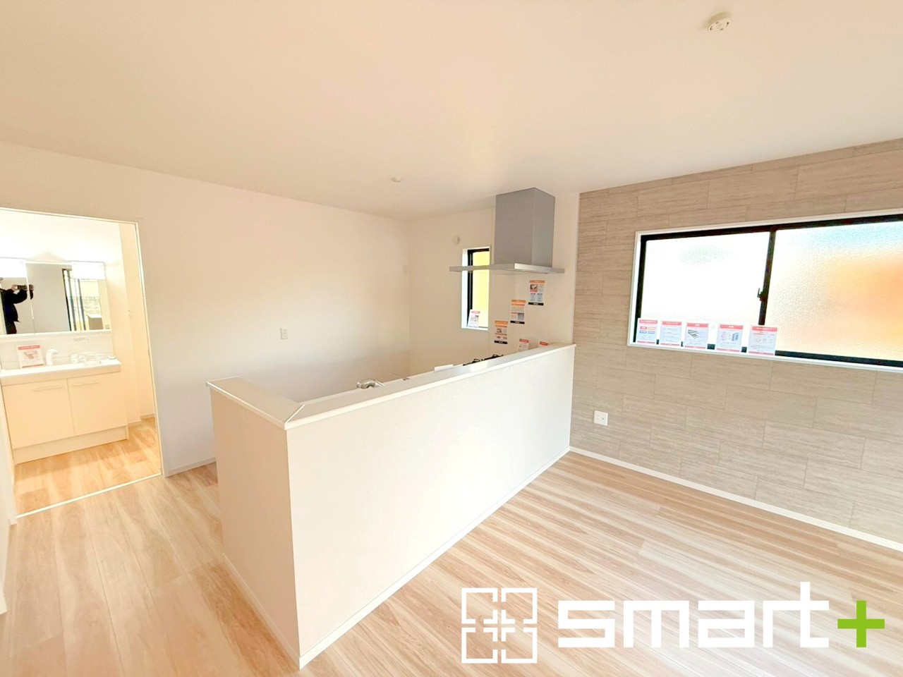 ~穏やかな陽の入るLDK~ ・穏やかな陽だまりに包まれる居心地の良いLDKは、ご家族が自然と集まる憩いのスペースに。 ・料理と洗濯、片付けなど並行して家事を進める時に便利な回遊動線。