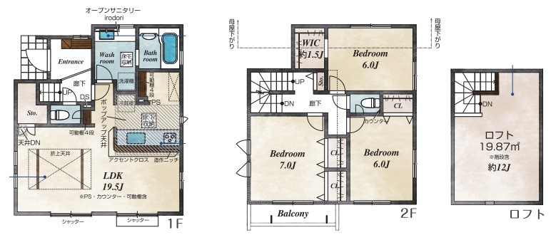 | 間取 | 3LDK + ロフト19.87平米 (LDK19.5帖、洋室7帖、洋室6帖、洋室6帖) | ||