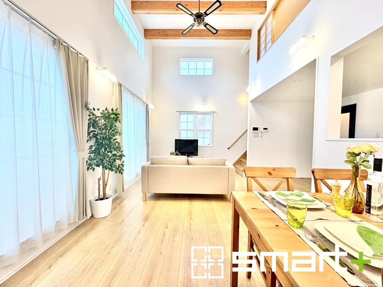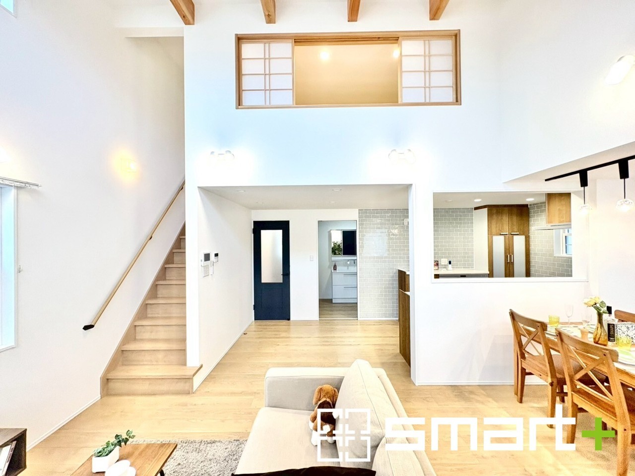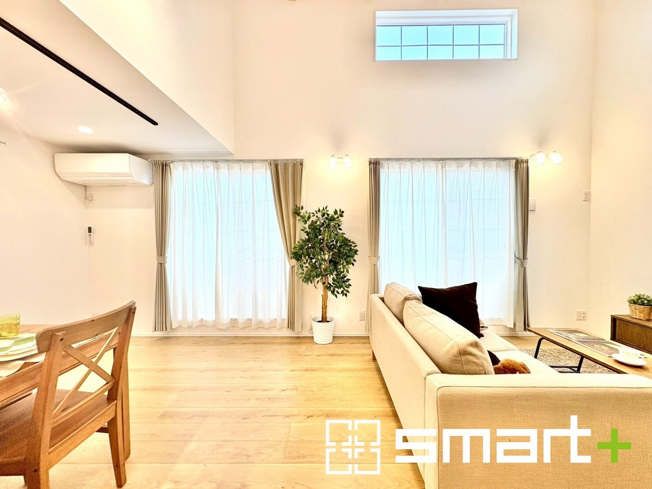 A号棟 ~吹抜けのあるLDK~ ・LDKに吹抜けを配する事で縦への空間が生まれ、開放感のある広々とした仕様に。 ・ご来客の際なども自慢できるような高級仕様のLDKとなっております。