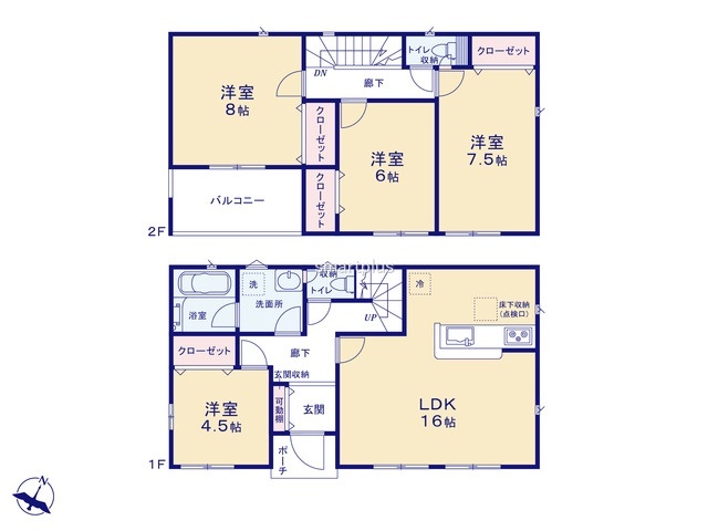 | 間取 | 4LDK (LDK16帖、洋室8帖、洋室7.5帖、洋室6帖、洋室4.5帖) | ||