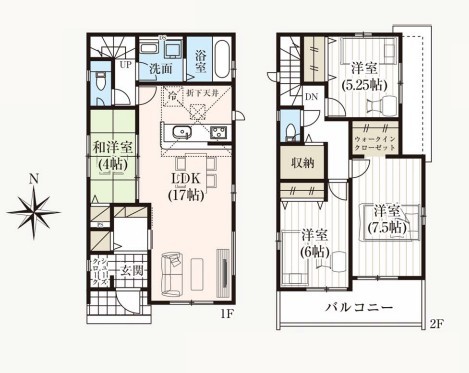 | 間取 | 4LDK + WIC、SIC (LDK17帖、洋室7.5帖、洋室6帖、洋室5.25帖、和室4帖) | ||