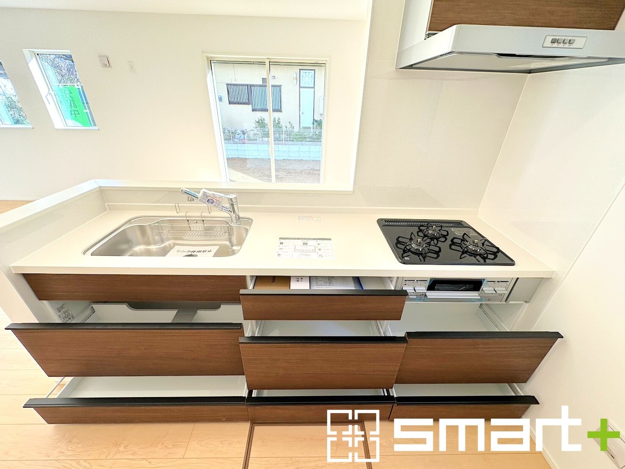 ~使い勝手の良いシステムキッチン~ ・料理がしやすい設計のキッチンでお料理もはかどりますね。 ・もちろんキッチン下部は収納になっておりますので、フライパンなども収納可能です。