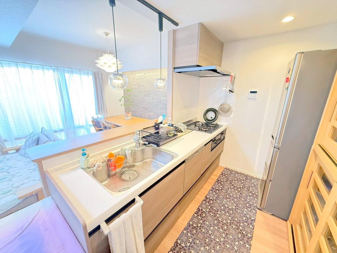 ~使い勝手の良いシステムキッチン~ ・料理がしやすい設計のキッチンでお料理もはかどりますね。 ・もちろんキッチン下部は収納になっておりますので、フライパンなども収納可能です。