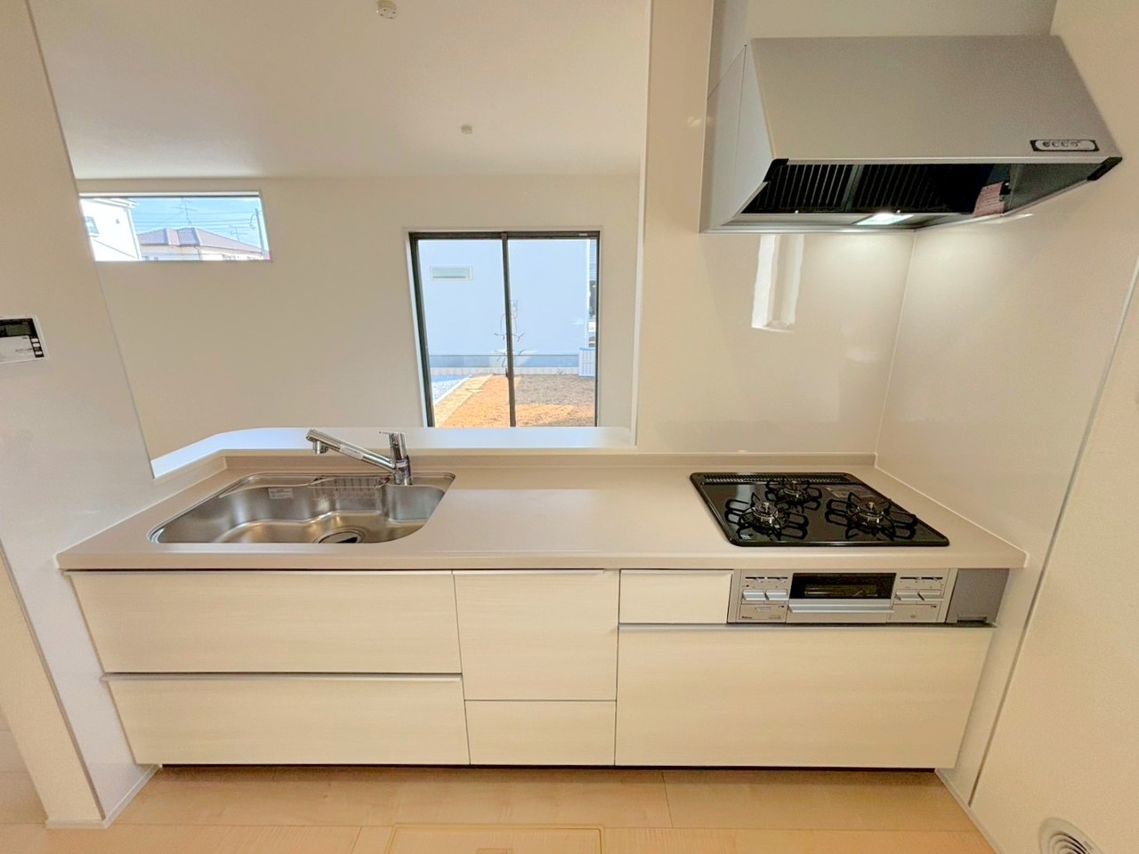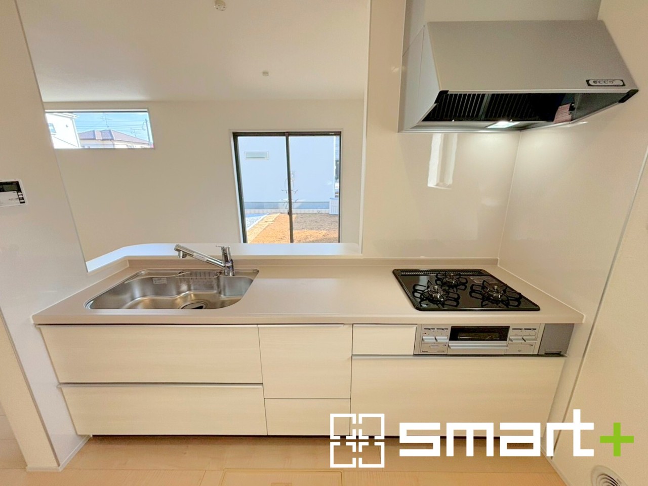 8号棟 ~人気のカウンターキッチン~ ・キッチンには余計な柱が無いので、リビングが見渡せ開放感のある造りとなっております。 ・蛇口には浄水器が内蔵されるなど機能面でも優れたキッチンです。