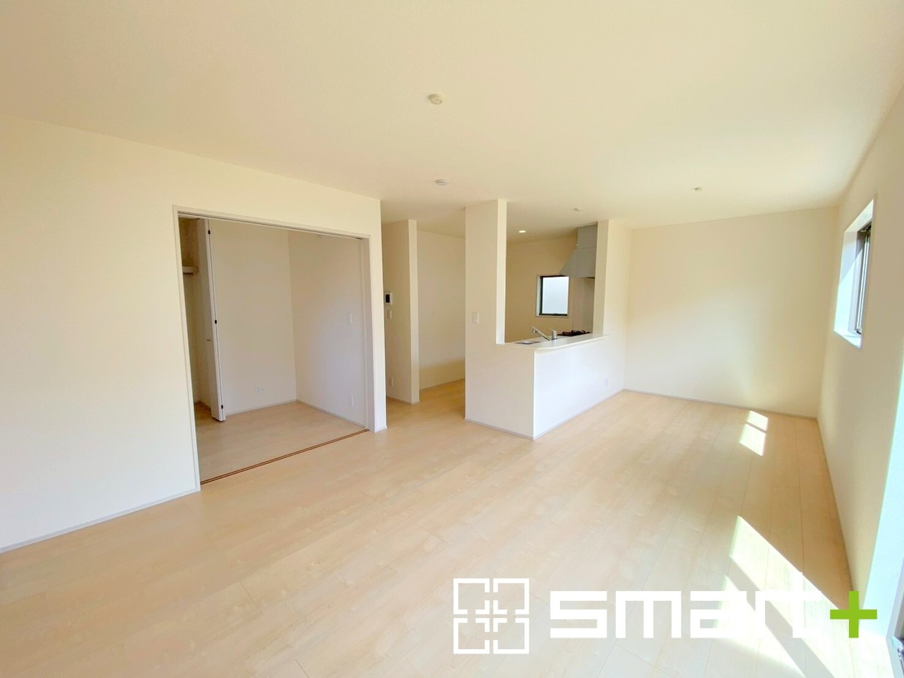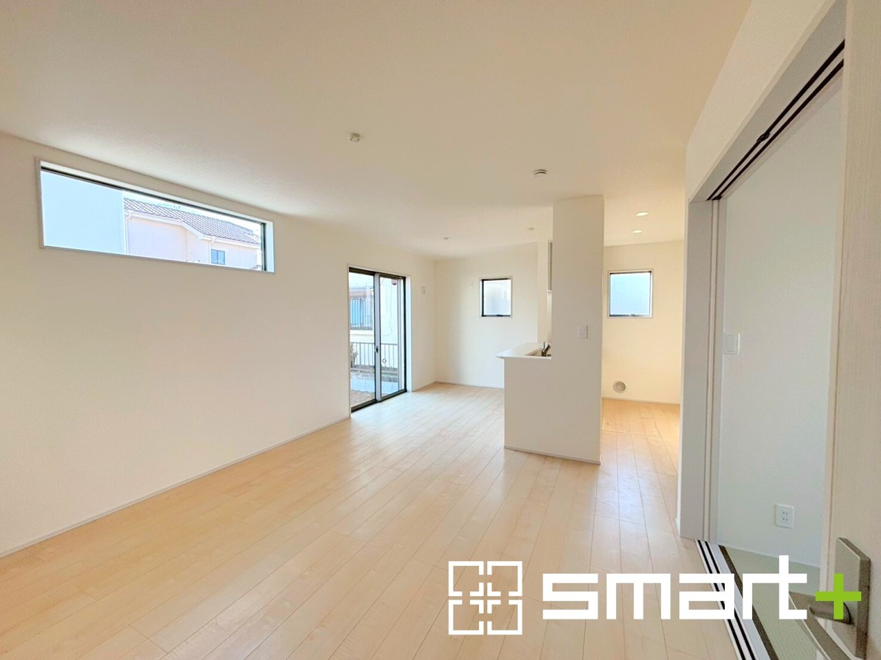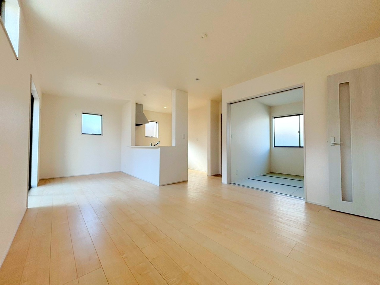 2号棟 ~穏やかな陽の入るLDK~ ・大きな窓のあるLDKは陽当りも良好で明るい空間となっております。 ・ご家族団らんなど過ごす時間の多いLDKが明るいのは嬉しいポイントですね。