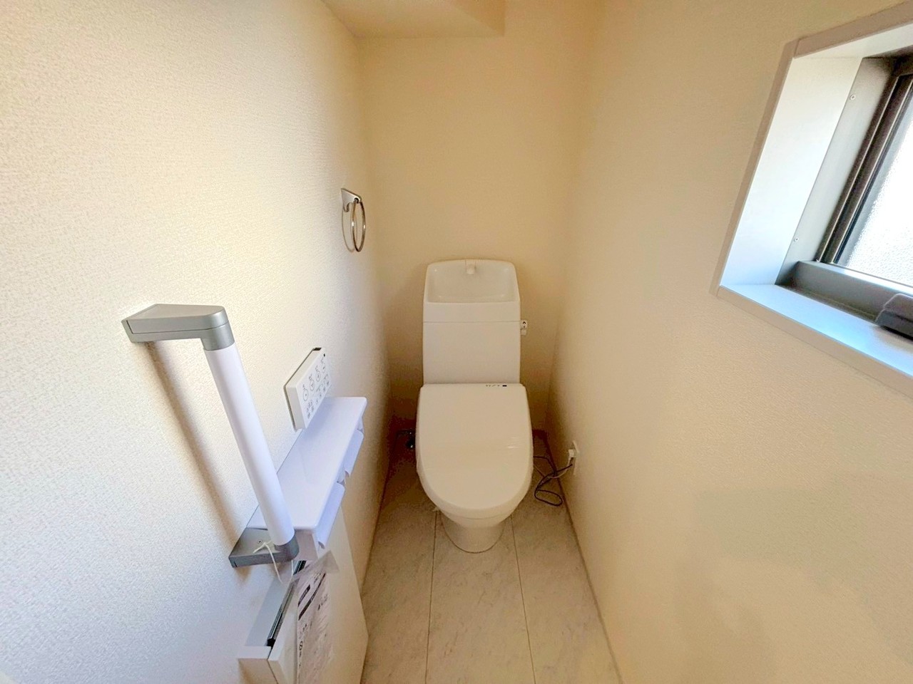 ~窓付きの明るいトイレ~ ・外からの日差しを取り込むので、昼間は窓からの光で十分ですね。 ・使用後や掃除の際に窓を開ければ、外からの新鮮な空気を取り込み素早く換気ができます。 (2号棟)