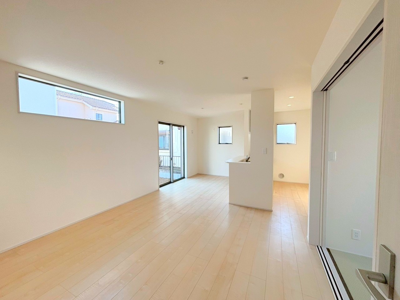 7号棟 ~穏やかな陽の入るLDK~ ・大きな窓のあるLDKは陽当りも良好で明るい空間となっております。 ・ご家族団らんなど過ごす時間の多いLDKが明るいのは嬉しいポイントですね。